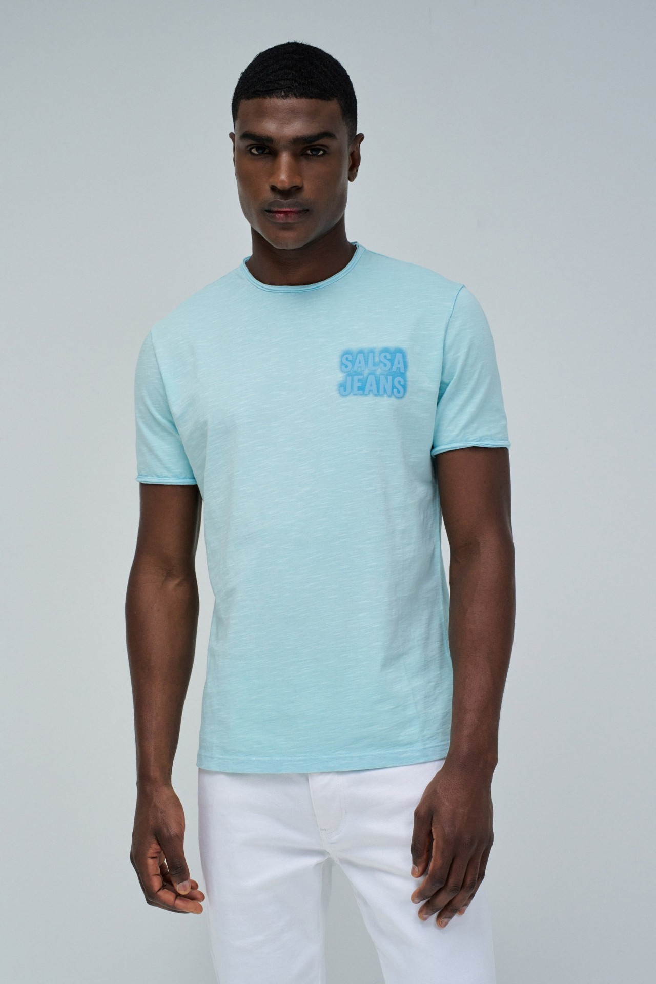 Sente o conforto desta t-shirt com tecido 100% algodão e fit slim, perfeita para um visual casual e moderno. Com um decote redondo e mangas curtas para um estilo descontraído. O detalhe de branding adiciona um toque de sofisticação a esta peça essencial no teu guarda-roupa.
